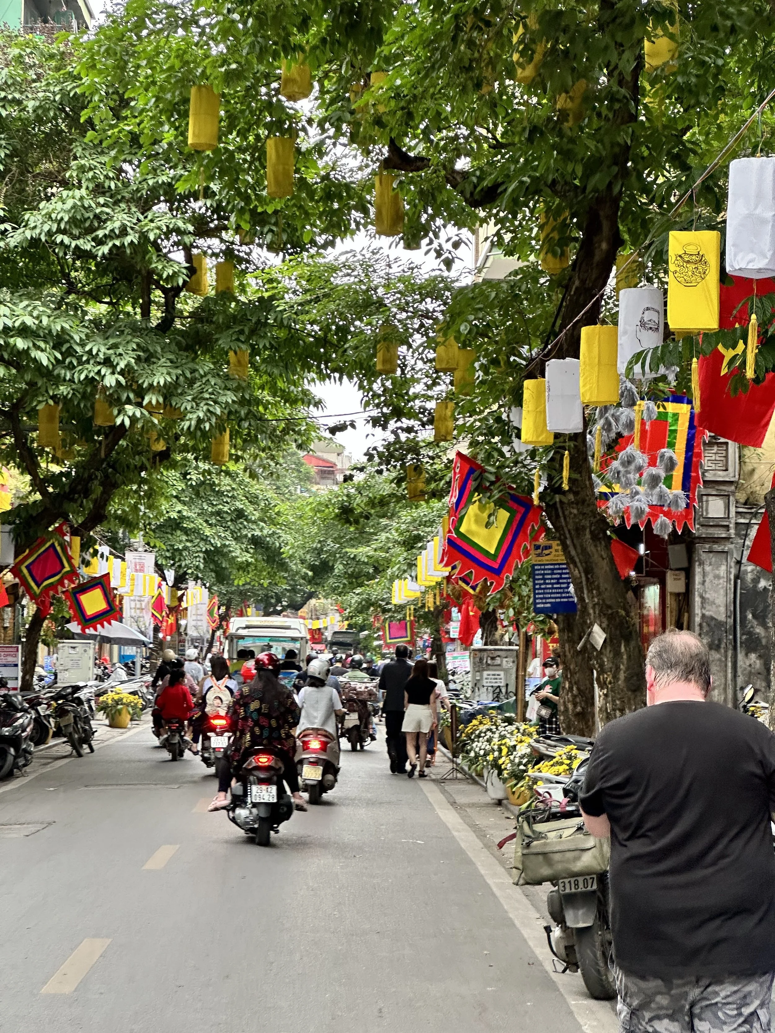 We crossed a long bridge to enter Hà Nội. Just like the previous cities, mopeds dominated the streets. Some streets were modern and filled mostly with mopeds. Older, narrower streets didn’t have traffic lights and the roundabouts had no rules. The newer buildings reflected the Vietnam we had experienced everywhere else; built tall, squeezed around each other, and full of activity. The older buildings had more space around them, occasionally with garden space, remnants of French colonization.